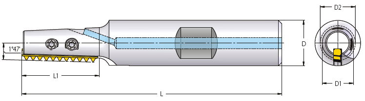 Schroefdraad freeshouder voor konische schroefdraden, Vardex MiTM19, plaatgrootte 19mm, met inwendig koelkanaal, met weldon schacht.